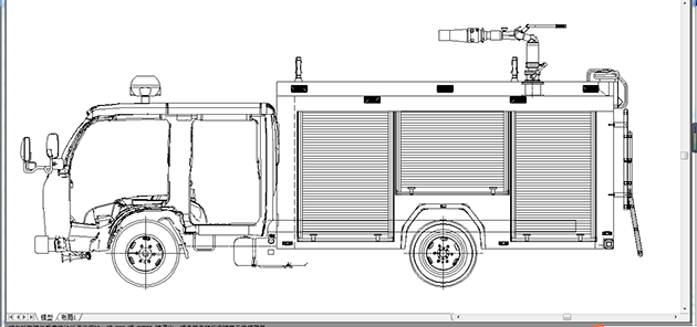 總體布置 | 整車由消防員乘員室和車身兩大部分組成,車身布置采用內藏罐式結構,左右兩側為器材箱,中部為水罐,器材箱后部為泵房。 |