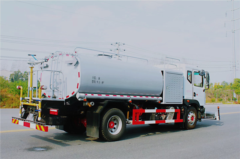 東風D9高壓清洗車是一種雙發動機、雙水泵清洗車,是在標準二類底盤的基礎上,加裝高壓沖洗系統、低壓沖洗系統,由機械、液壓(氣路)、電器三部分合為一體的專用沖洗作業車。本車具有獨立的高、低壓兩套水路系統,為清洗車工作提供壓力水源。其工作原理是:利用高壓水泵產生的高壓水,經噴水架的高壓噴嘴噴出,利用高壓水流的動能,以高壓力、低流量的方式進行清洗,強力去污,高效節水,能將路面的陳舊污漬清洗干凈;或高壓水經左(右)角噴噴出,清洗路緣、人行道及護欄隔離區;使用高壓噴槍還可清洗路標、廣告牌、高架路等;噴霧系統具有強大的噴霧降塵、噴撒空氣消毒劑及調節空氣濕度功能。