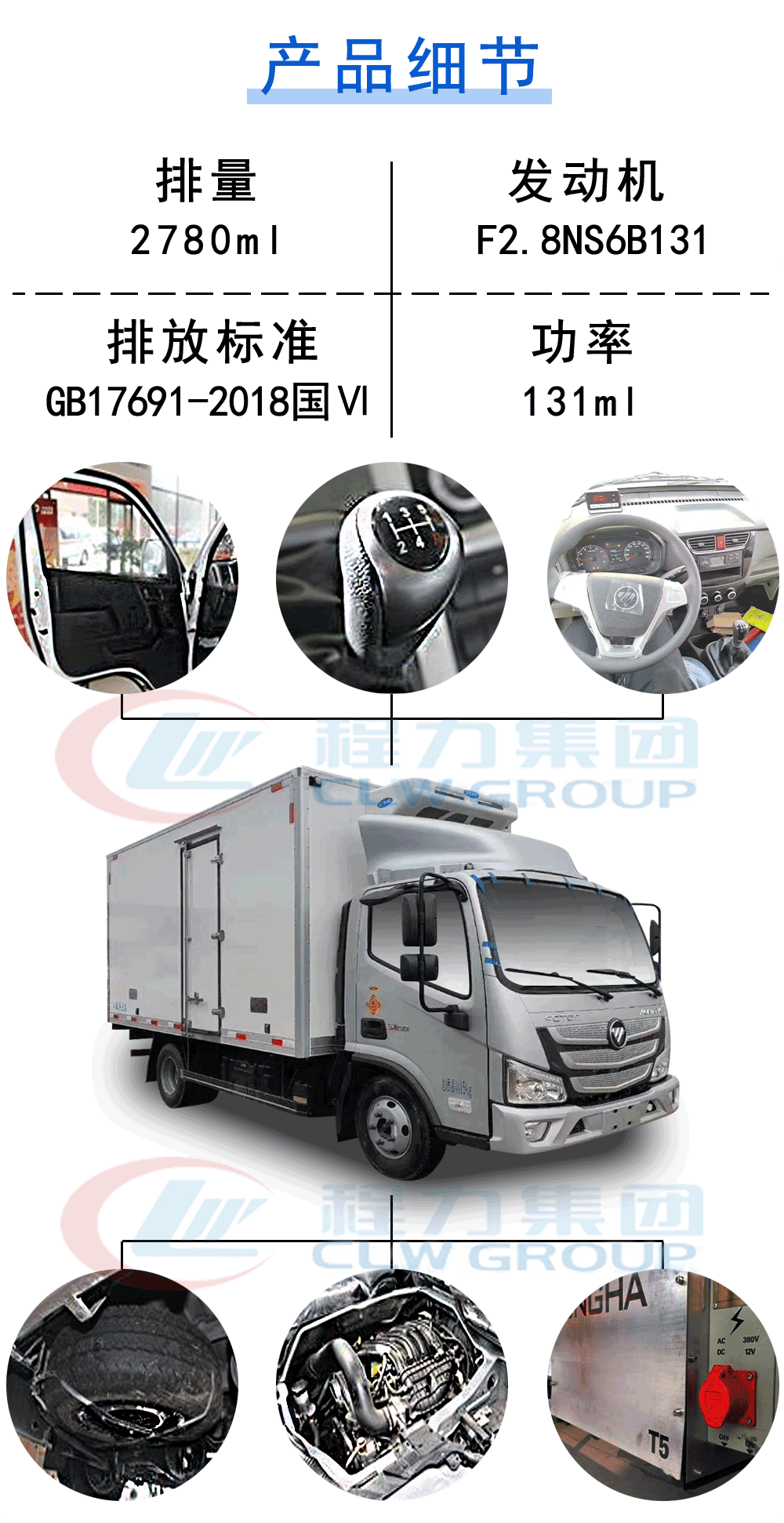 | 其他 | 1.選裝導(dǎo)流罩;選裝兩側(cè)單、雙、無側(cè)開門;選裝同等功率制冷機(jī)組,外觀形狀可不同.2.ABS型號(hào)及廠家對(duì)應(yīng)關(guān)系:液剎:ABS系統(tǒng)型號(hào):YF8;生產(chǎn)企業(yè):武漢元豐汽車電控系統(tǒng)有限公司.氣剎:ABS系統(tǒng)型號(hào):ABS-VI.E;生產(chǎn)企業(yè):廣州瑞立科密汽車電子股份有限公司.3.F2.8NS6B131、F2.8NS6B156發(fā)動(dòng)機(jī)最大凈功率分別為93kw、112kw.4.選裝前圍及前部燈具,前下視鏡為選裝件可不裝,選裝排半駕駛室,排半駕駛室對(duì)應(yīng)貨箱內(nèi)部長(zhǎng)度為3700mm,單排駕駛室對(duì)應(yīng)貨箱內(nèi)部長(zhǎng)度為4080mm.5.側(cè)防護(hù)的連接方式是與貨箱橫梁螺栓連接,側(cè)防護(hù)材料為冷板B-2.0/20,選裝材料為20號(hào)鋼的側(cè)防護(hù)、選裝鋁合金6061-T6側(cè)防護(hù).后防護(hù)連接方式是與車架縱梁螺栓連接,后下部防護(hù)裝置材料為Q345A,選裝材料為AL6082-T6的后下部防護(hù)裝置。后部防護(hù)裝置截面尺寸100×50mm,后防護(hù)距離車輛離地高度470mm;6.發(fā)動(dòng)機(jī)F2.8NS6B131、F2.8NS6B150、F2.8NS6B156對(duì)應(yīng)油耗值為10.8;7.貨廂頂部封閉,不可開啟.8.準(zhǔn)拖掛車總質(zhì)量為3500kg,中置軸掛車的牽引桿深入量750mm,中置軸牽引桿連接器最大負(fù)荷350kg. | ||