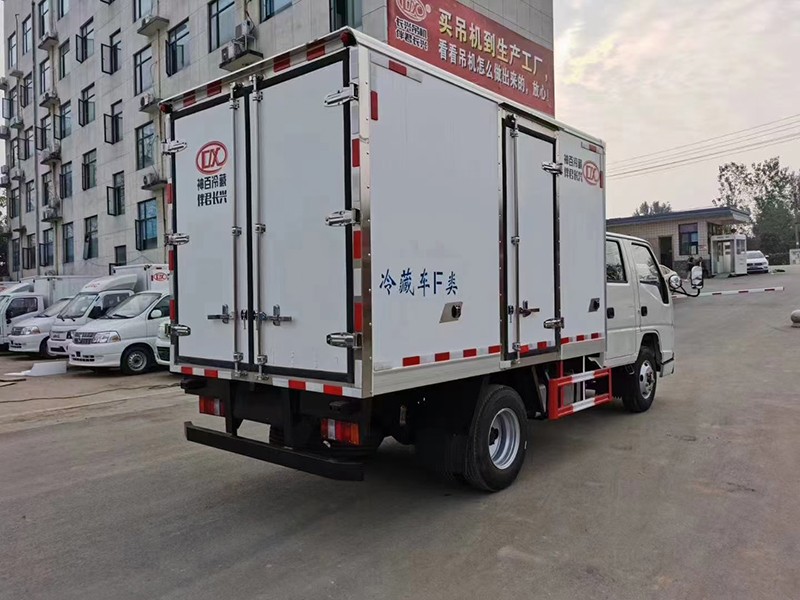 江鈴順達(dá)雙排冷藏車,整車型號:AAA5043XLCJX6,整車尺寸:5995×1980×2900,廂體尺寸:3250×1800×1800,五十鈴115馬力發(fā)動機(jī),5檔變速箱,原廠空調(diào),助力,ABS,油剎,軸距3360,7.00R16LT 8PR輪胎,廂體采用內(nèi)外玻璃鋼、中間8CM 厚聚氨酯保溫板、底板為防滑花紋鋁板,單開側(cè)門,不銹鋼門鎖件,-15度制冷機(jī)組,其余標(biāo)配。